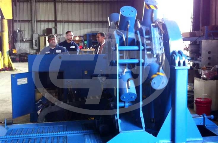 液壓擰扣機(jī)主要用于液壓油缸及油田拆裝套管接箍、油管接箍、抽油泵接箍、封隔器接頭、井下工具及鉆井工具等一些圓柱型螺紋聯(lián)接件。該設(shè)備主要由上卸扣主機(jī)、液壓系統(tǒng)、電控系統(tǒng)等三大主要部分構(gòu)成,并可根據(jù)工件特性進(jìn)行設(shè)計(jì)研發(fā)。